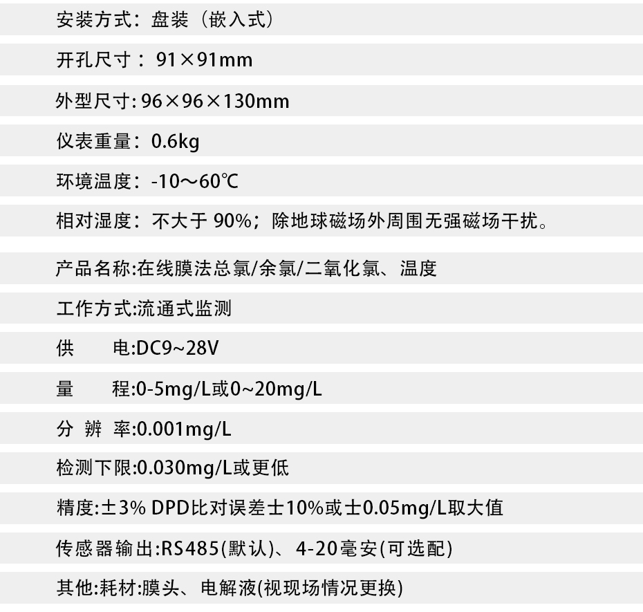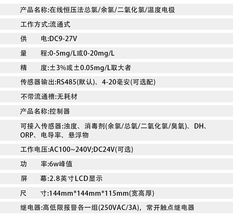 • 在線余氯儀